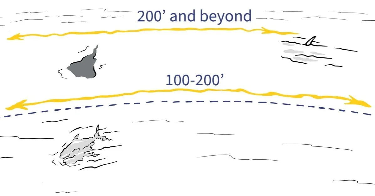 The three fish-spotting zones: Within 100 feet; 100 to 200 feet; and, 200 feet and beyond.