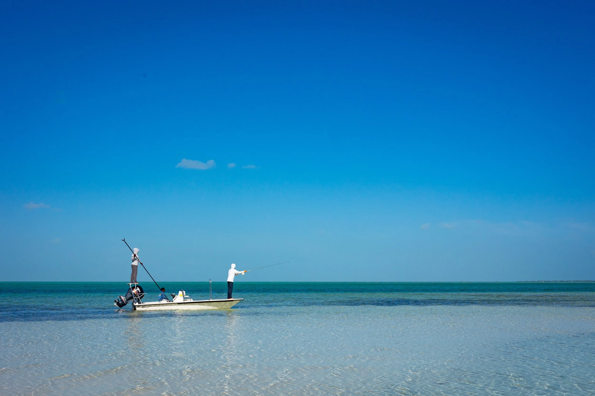 You’re now in the ready position, primed to spot fish, point your rod when your guide gives directions (i.e., “11 o’clock, 50 feet”), and make that exceptionally beautiful cast. Try to relax as you hold your rod, line, and leader in this position; there’s no need to white-knuckle it all.